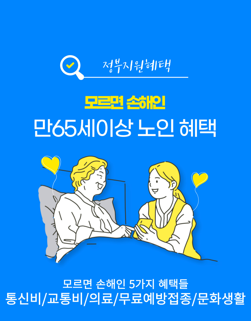 정부에서는 만 65세 이상인 분들을 위해 다양한 혜택을 지원해 준다.