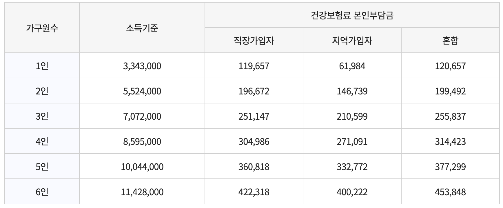- 건강보험료 본인부담금에 의한 기준중위소득 150% 판정기준
