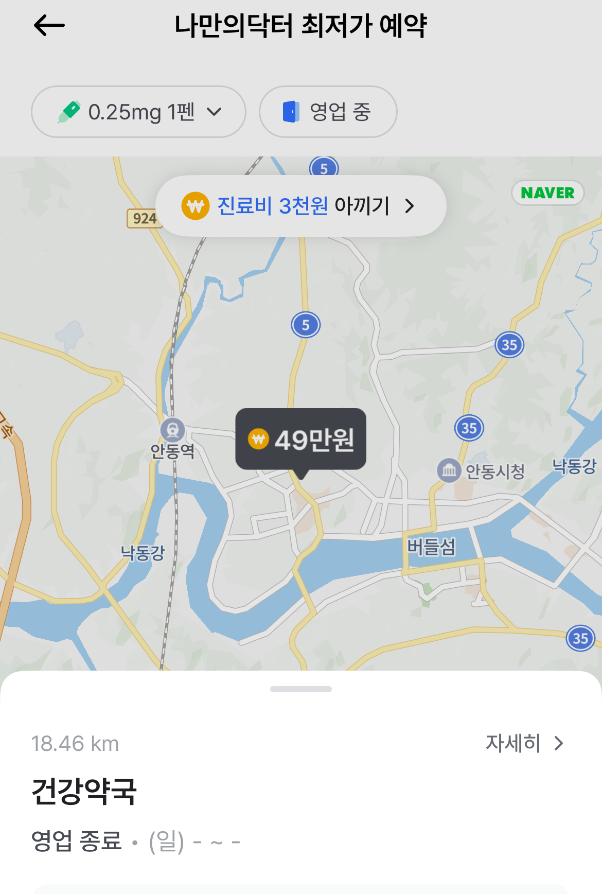사실 안동에 있는 위고비 처방 약국을 '나만의 닥터' 어플로 검색해 봤는데 안동 지역에 위고비 주사를 판매하는 곳은 여기 한 곳밖에 없었다. 선택의 여지가 없어 약국 바로 옆에 있는 고려정형외과병원에 문의해보니 처방이 가능했다.