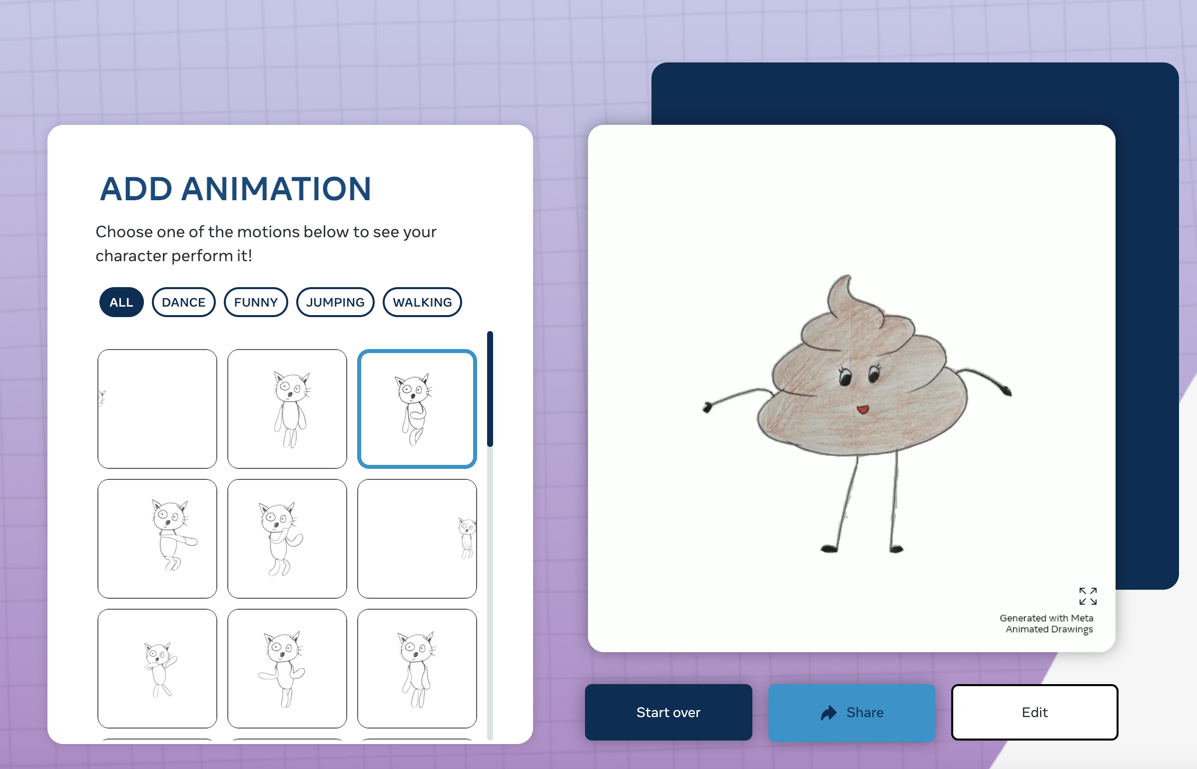 Meta의 AI 실험실에서 개발한 Animated Drawings는 종이 위나 태블릿에 그린 그림을 생동감 있게 움직이는 애니메이션으로 바꿔준다. 따로 프로그램을 설치하지 않아도 아이가 직접 그린 그림을 올리면 AI가 자동으로 캐릭터를 인식하여 다양한 동작의 애니메이션을 생성해 준다. 직접 그린 캐릭터가 걸어 다니고, 춤추고, 뛰어다니는 모습을 보면 아이들이 정말 신기해한다. 아이들의 창의력과 흥미를 동시에 자극할 수 있어서 좋은 프로그램이다.