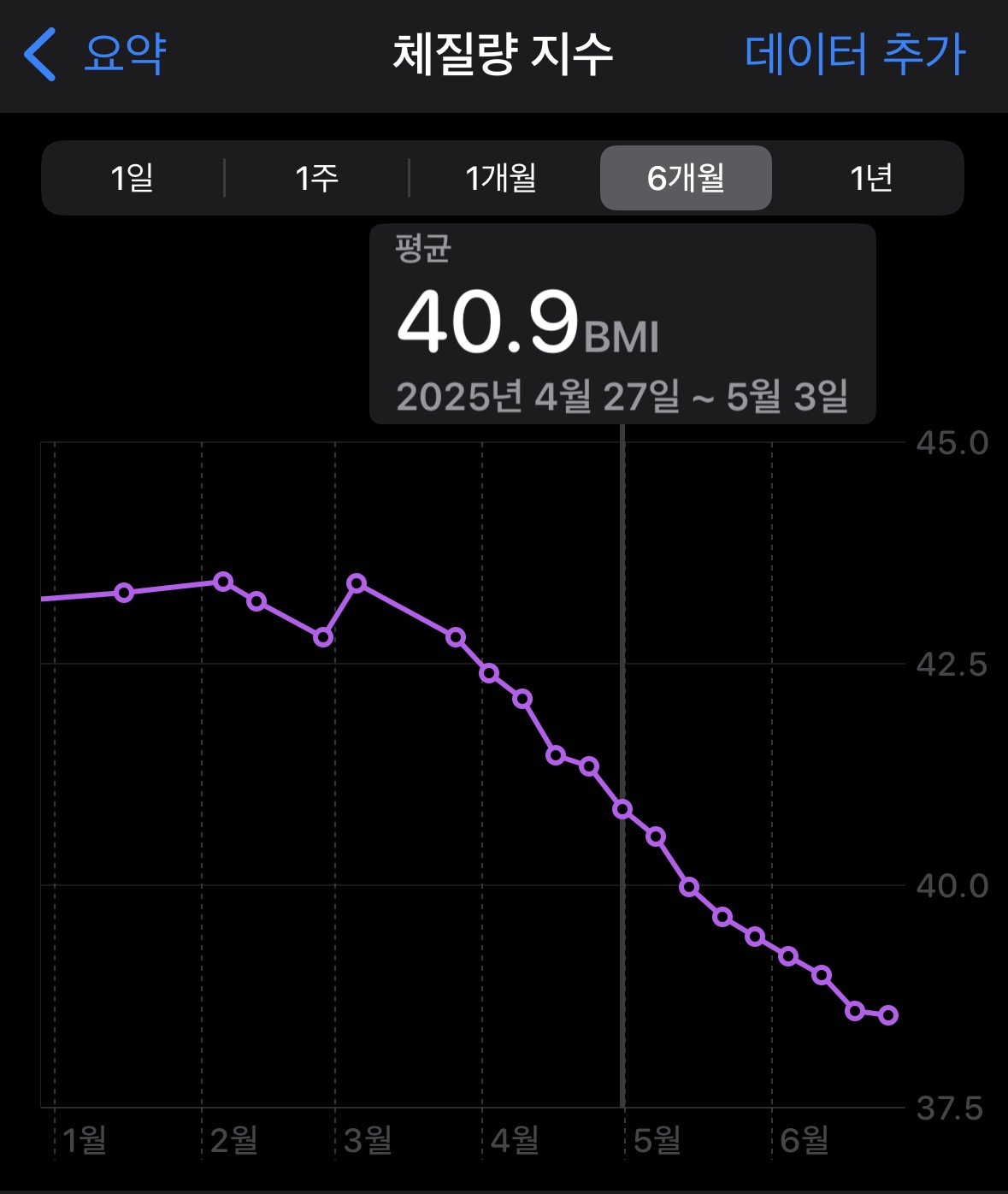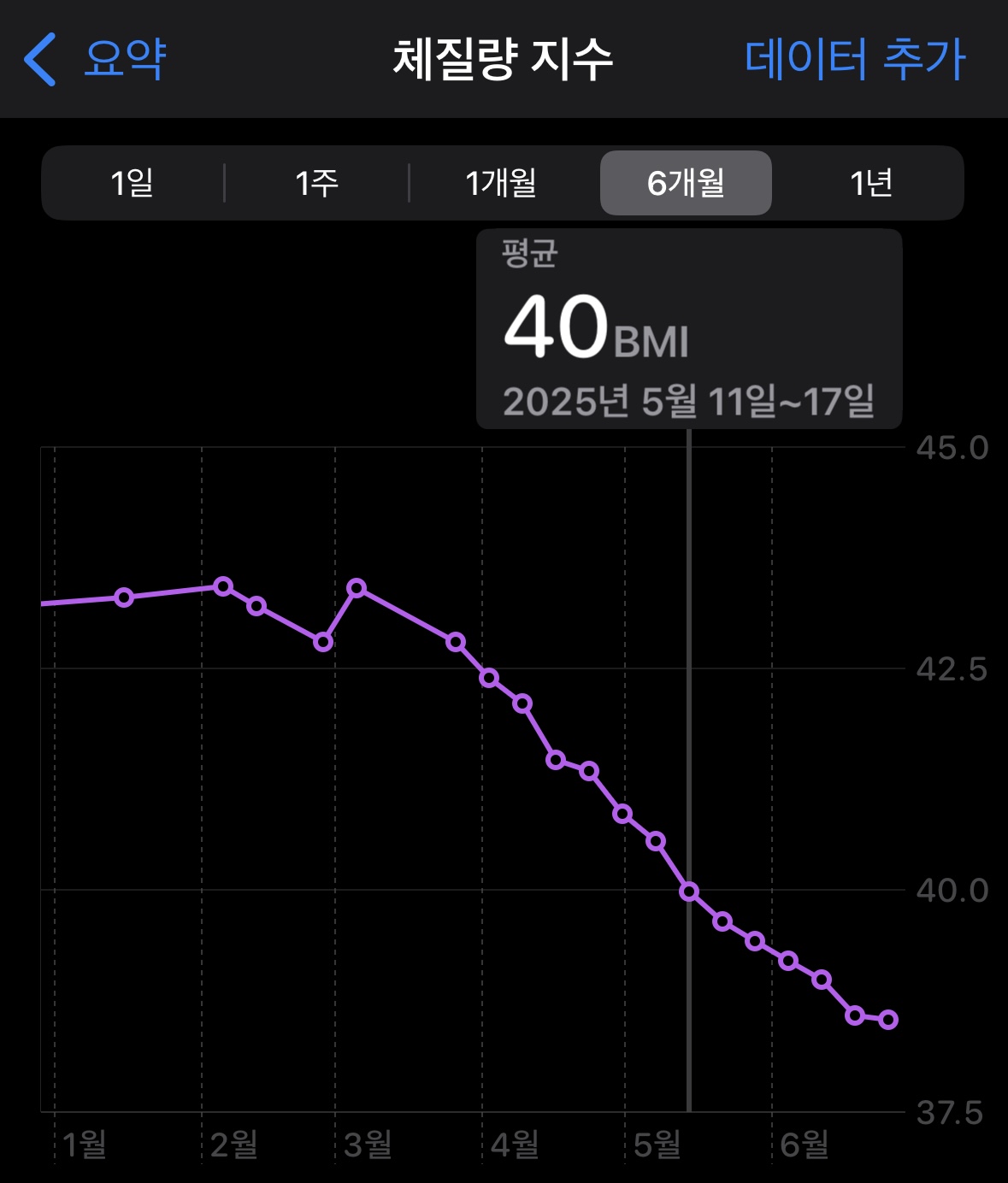 | 한달간 체질량 지수 변화 (애플 건강 앱) | |