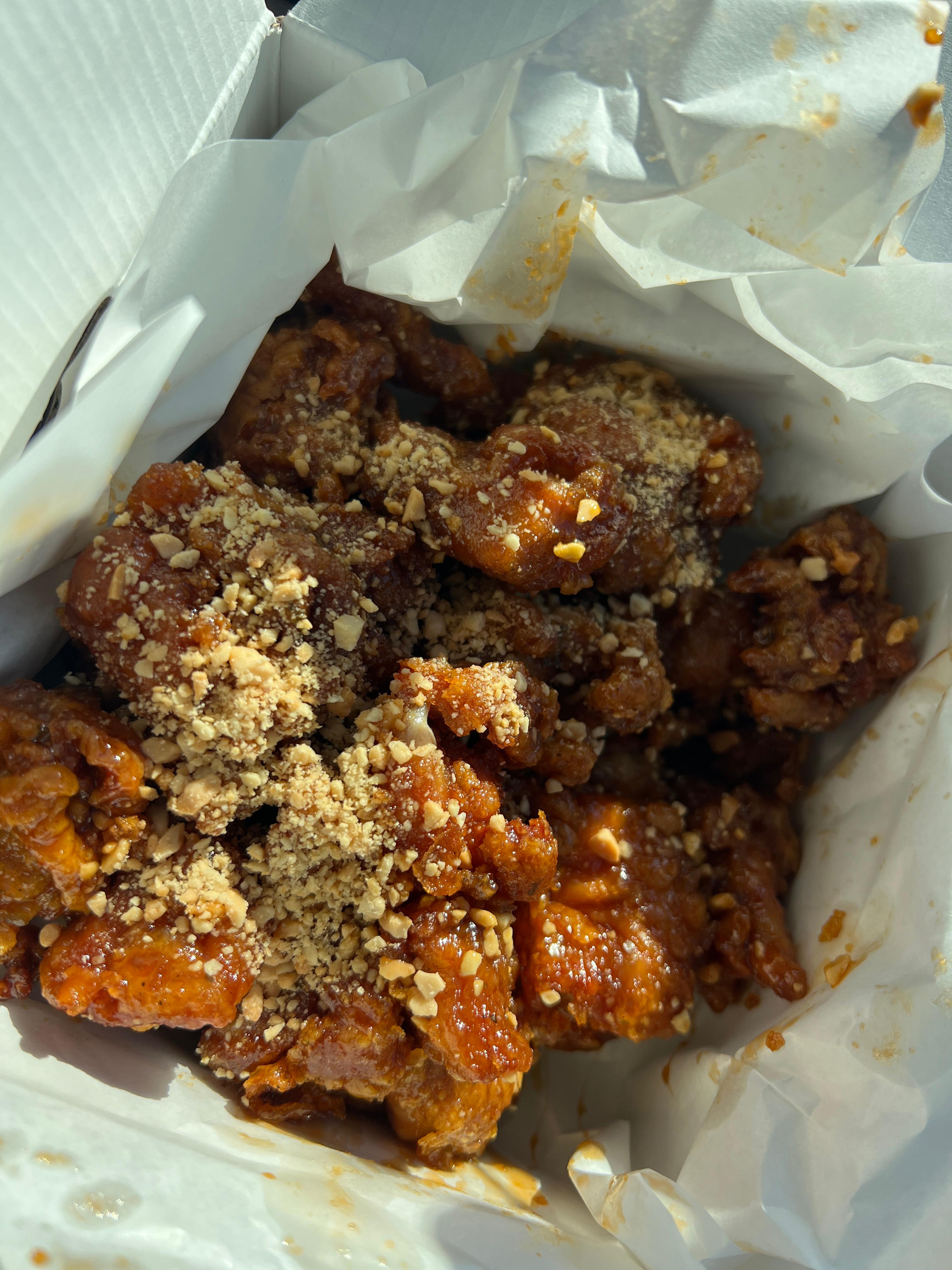 - 닭강정이 많이 달지 않고 닭다리살을 사용해서 뻑뻑하지 않고 부드럽다.