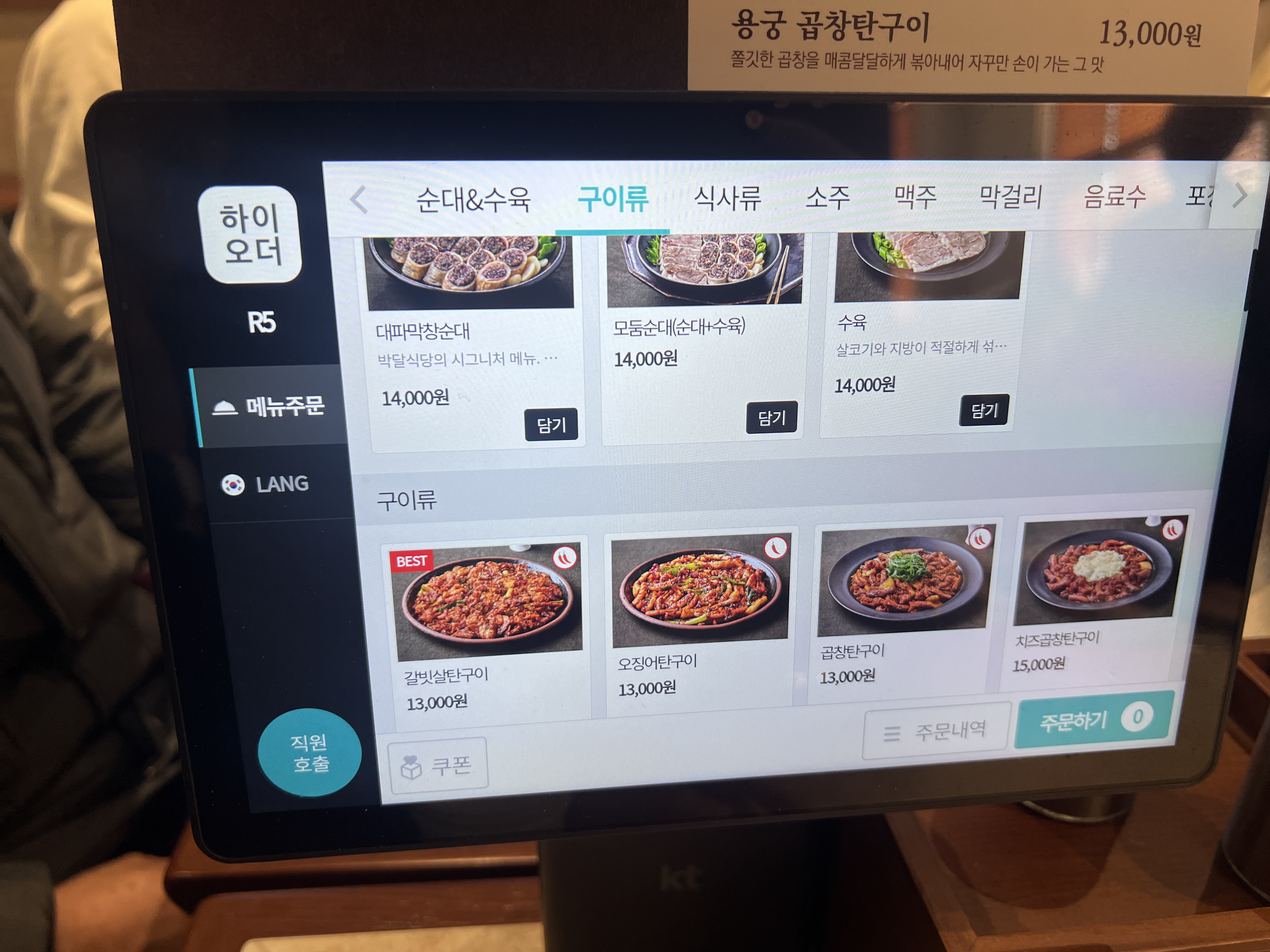 오징어, 곱창, 갈빗살 구이류: 13,000원