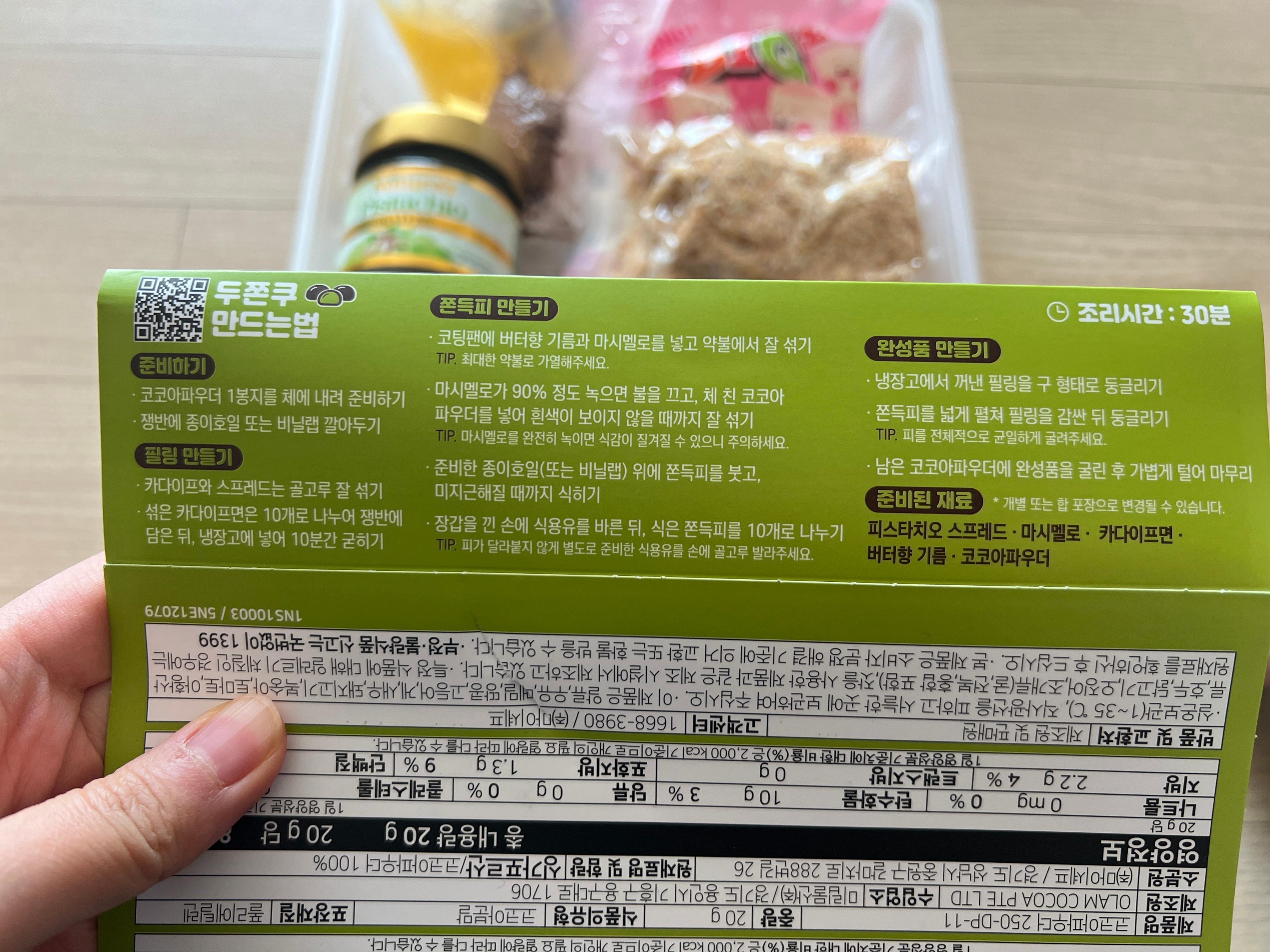 두쫀쿠를 만들기 위한 재료가 전부 들어 있어서